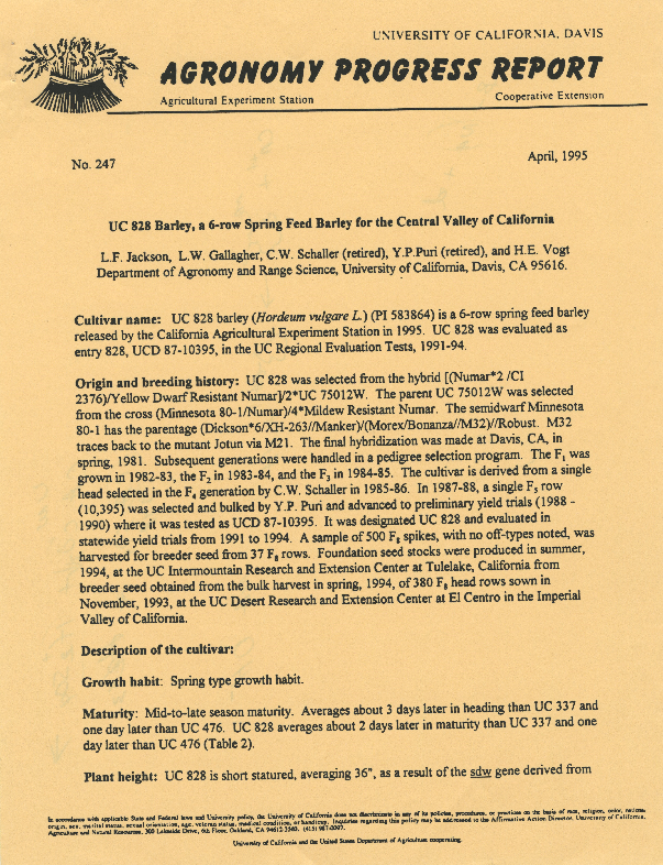 Credit To @ Agronomy Progress Report: UC 828 Barley ...
